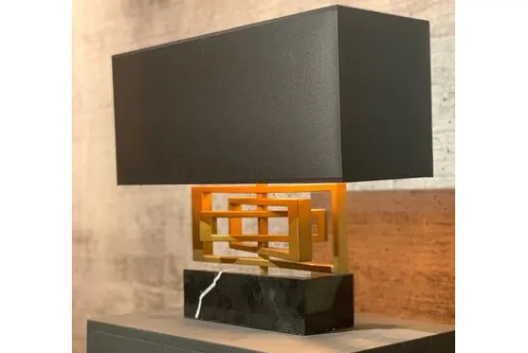 Tafellamp Avenue LB036/1TL matt brass van het merk Leclerq & Bouwman heeft een voet van zwart marmer en een zwarte rechthoekige lampenkap. Het middelste deel van de lamp is gemaakt van metaal met een messing afwerking, dit zorgt voor een stoere uitstraling.
