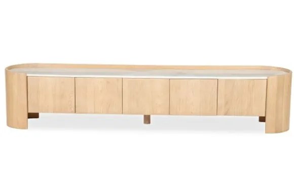 Tv-meubel Don 96366 van het merk Eleonora is een toonbeeld van hedendaagse elegantie, verrijkt met natuurlijke details en verfijnde materialen. Met zijn afgeronde hoeken, minimalistische belijning en harmonieus design straalt dit tv-meubel rust en verfijning uit. Het meubel is vervaardigd uit massief eikenhout, met een subtiel glanzend blad van wit marmer dat een luxueuze, lichte toets toevoegt.