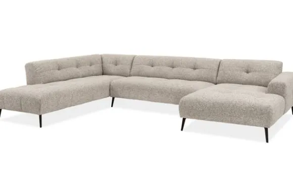 Hoekbank Kanso van het merk Elitosa is een moderne bank met een luchtige en open uitstraling. De elegante, rechte lijnen en lage rugleuning zorgen voor een eigentijdse look die perfect past in een stijlvol interieur.