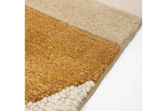 Vloerkleed Kazi Mustard 240037 van het merk ByBoo is een speels uitziend vloerkleed gemaakt van wol en viscose. Wol is een natuurlijk materiaal met veel positieve eigenschappen. Het is namelijk vuilafstotend, slijtvast, geluiddempend en isolerend. Ook heeft het een luxe uitstraling en voelt het heerlijk warm aan. Door het viscose heeft het vloerkleed een zijdeachtige glans en is het slijtvast. Doordat het tapijt handgemaakt is, ontstaat er een soort reliëf tussen de verschillende vormen.
