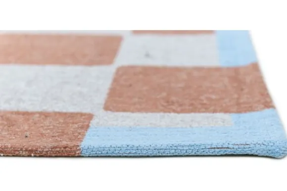 Vloerkleed Chess Nude 9341 van het merk Louis de Poortere is een eigentijdse herinterpretatie van het klassieke schaakbordmotief. Het onregelmatige, grafische patroon speelt met contrasten en vormen, waardoor een dynamisch geheel ontstaat dat meteen de aandacht grijpt. De warme nudetinten worden versterkt door de frisse blauwe accenten, wat het kleed een energieke en toch verfijnde uitstraling geeft. Het subtiele reliëf en de materiaaldiepte zorgen voor een tastbare beleving.