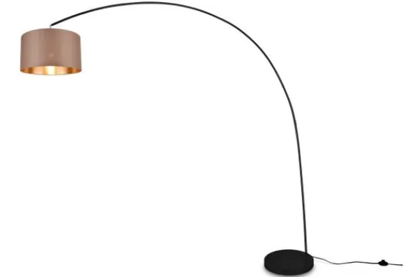 Vloerlamp Mansur 419200141 van het merk Trio Lighting is een elegante booglamp met een verfijnde uitstraling. De royale taupekleurige textielkap straalt warmte uit en zorgt voor een zachte lichtverdeling, perfect om sfeer te brengen in je zithoek of naast de bank. De slanke, zwarte boog en stevige voet maken van Mansur een stijlvolle eyecatcher in elk interieur.