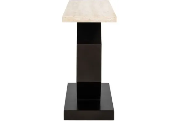 Wandtafel Avalon 211701 van het merk Richmond Interiors heeft een blad vervaardigd uit travertijn. Travertijn is een kalksteen die gevormd wordt door de neerslag van kalk uit oververzadigd water uit warme bronnen. Het kenmerkt zich door diverse warme kleurschakeringen die uiteenlopen van een warm beige kleur tot een diepe bruine gloed. Het onderstel is vervaardigd uit zwart metaal in de vorm van een achthoek. Deze wandtafel is geschikt voor de woonkamer, slaapkamer, maar ook kleinere ruimtes zoals de hal en een echte eyecatcher in jouw interieur!