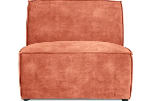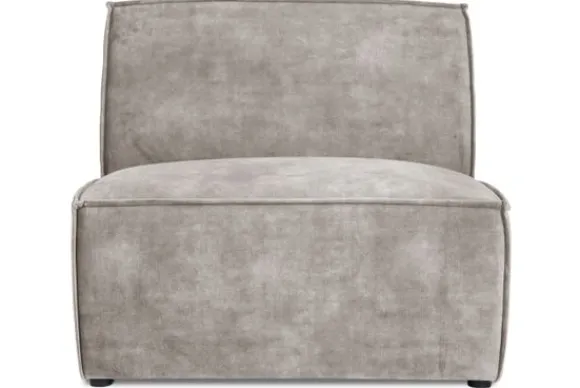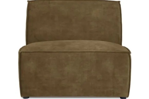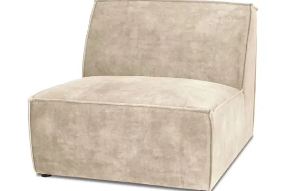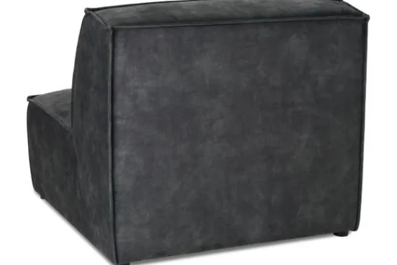 Zitelement Loki van het merk Dakota Industrial oogt robuust door de vaste kussens en de zitting die doorloopt tot net boven de grond. De stoel heeft diepe zittingen en is afgewerkt met geknepen naden.