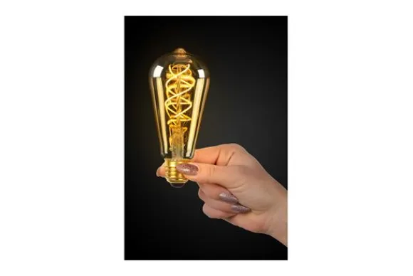 Lichtbron LED van het merk Lucide doet denken aan een kooldraadlamp. De vergelijkenissen zijn snel gemaakt: een gele gloeidraad en een vintage design. Met zijn led-filament past LED-Bulb bij lampenvormen waarbij de lichtbron zichtbaar is. Sowieso geniet je van een prachtig lichtspektakel waarbij het licht alle kanten op schijnt. De combinatie van warm wit licht en de zuinigheid van led-verlichting maken van LED Bulb het ideale alternatief voor de traditionele gloeilamp. Interessant om te weten: in tegenstelling tot veel andere led-filamentlampen is deze LED lichtbron perfect dimbaar.