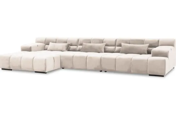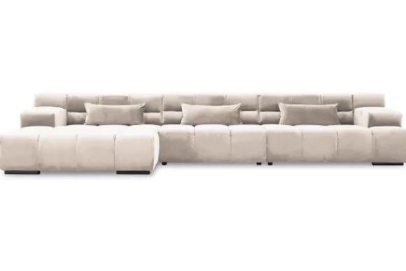 Dit bankstel is samen te stellen in vele afmetingen en verschillende opstellingen, of kies uit een van de standaard opstellingen. Ook kan je kiezen uit mat zwarte of chroom pootjes en zijn er bijpassende hoofdsteunen, sier- en lendekussens en poefjes beschikbaar. Deze worden uitgevoerd in dezelfde stof als de bank.