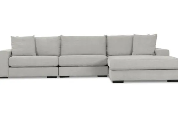Loungebank Napels van het merk Be Inspired is snel leverbaar in de opstelling 1+1+longchair in de stof Miami 01. Dit is een knusse bank door de losse rugkussens en meegeleverde sierkussens. De rugkussens worden aan de achterkant ondersteund door rollen op de lage rugleuning. Dankzij dit ontwerp voor de rugleuning kan je comfortabel hangen op deze bank en met een sierkussen in je rug kan er ook goed op gezeten worden.
