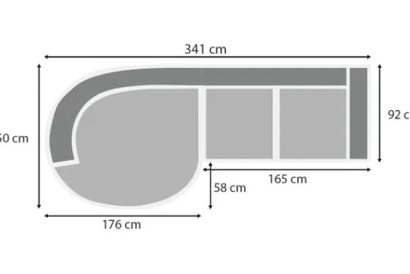 Loungebank Dordoni van het merk Be Inspired is snel leverbaar in de opstelling divan smal + 2 in de stof Tiffany 05. De Dordoni bank wordt standaard uitgevoerd met alle sierkussens en lendekussens die ook op de foto te zien zijn. De rugkussens daar achter zijn lekker hoog, deze combinatie zorgt voor een goede ondersteuning van de rug. Alle rugkussens zitten los en zijn omkeerbaar, de zitkussens zitten vast met klittenband. Het unieke aan de Dordoni is het ronde loungegedeelte. Je kunt hier lekker wegkruipen tussen alle sierkussens. Deze bank oogt ruimtelijk door de hoge metalen sledepoten.