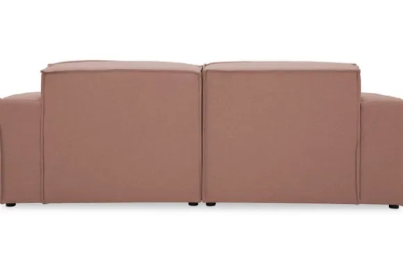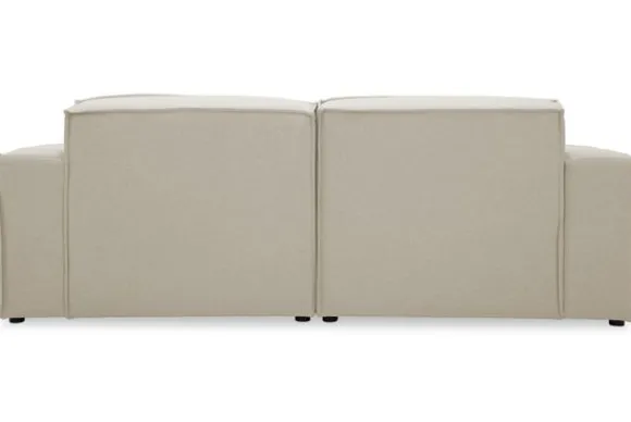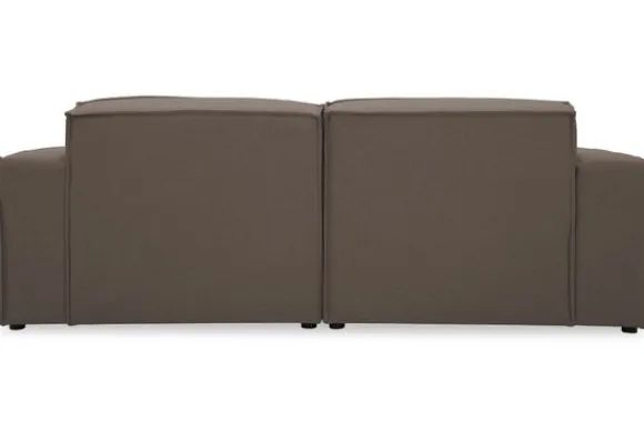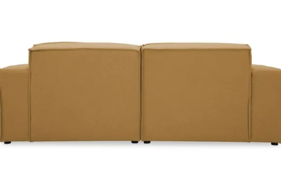 Zitbank Loki van het merk Dakota Industrial oogt robuust door de vaste kussens en de zitting die doorloopt tot net boven de grond. De bank heeft diepe zittingen en is afgewerkt met geknepen naden.