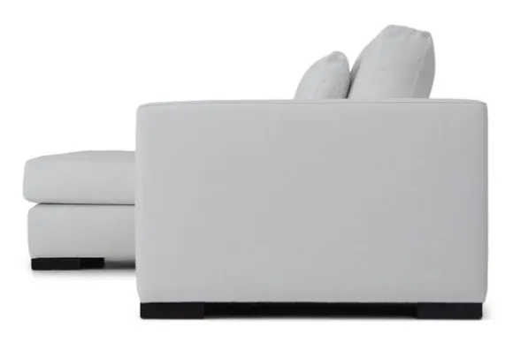 Deze Loungebank wordt standaard uitgevoerd met zwarte blok poten. Armkussens en voorzetkussens zijn optioneel.