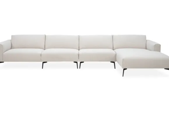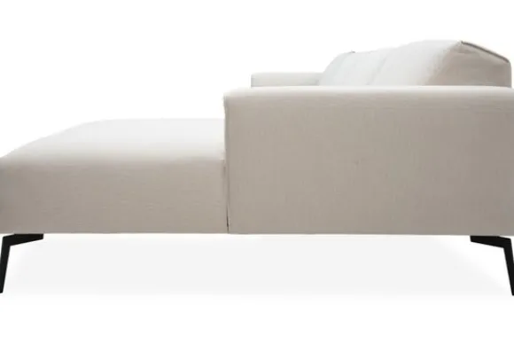 Loungebank Romi van het merk Gabanna is uit voorraad leverbaar in de opstelling 1,5+1,5+Longchair in de stof Board 102 met een koudschuim zitvulling en zwart metalen poten.