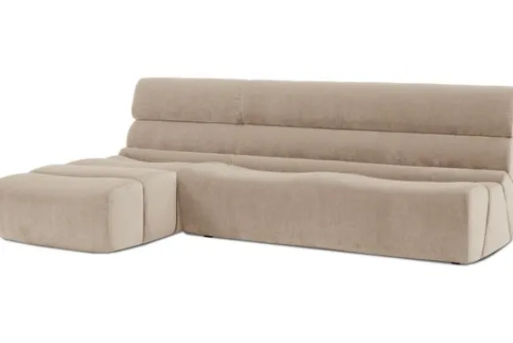 Loungebank Swirl van het merk Italian Comfort Style is een opvallende bank met horizontale banen en ronde vormen.