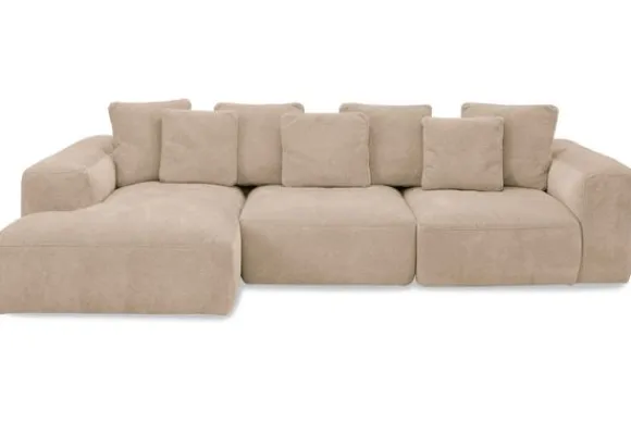 Er zijn bijpassende sierkussens en hockers beschikbaar. De hocker biedt extra zitruimte en is ideaal om je benen op te laten rusten, of gebruik hem als tafel of verlengstuk van de bank.