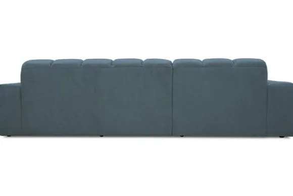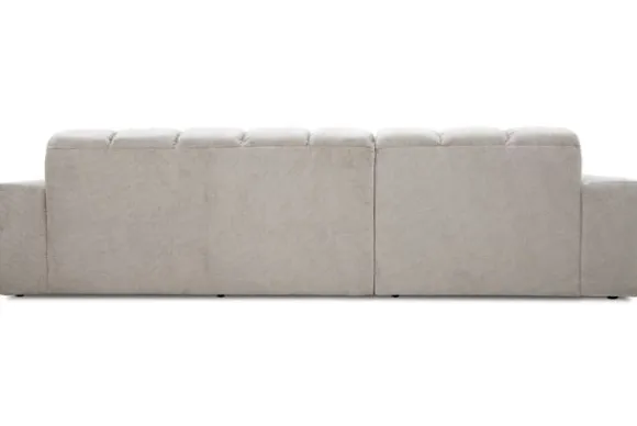 Bankstel Treviso van het merk Moderno is een bank met geblokte zit- en rugkussens en een zitting die doorloopt tot net boven de grond.