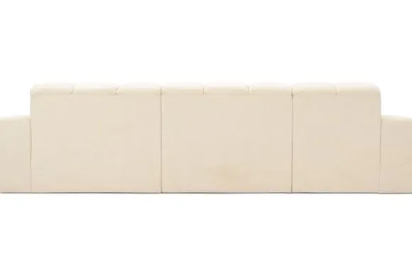 Bankstel Treviso van het merk Moderno is een bank met geblokte zit- en rugkussens en een zitting die doorloopt tot net boven de grond.