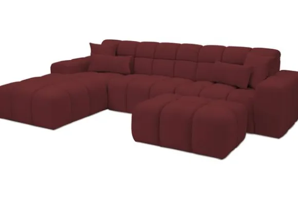De bank is samen te stellen in vele afmetingen en verschillende opstellingen, of kies uit een van de standaard opstellingen. Ook zijn er bijpassende sierkussens en poefjes beschikbaar. Deze worden uitgevoerd in dezelfde stof als de bank.