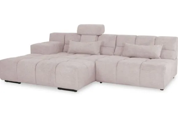 Dit bankstel is samen te stellen in vele afmetingen en verschillende opstellingen, of kies uit een van de standaard opstellingen. Ook kan je kiezen uit mat zwarte of chroom pootjes en zijn er bijpassende hoofdsteunen, sier- en lendekussens en poefjes beschikbaar. Deze worden uitgevoerd in dezelfde stof als de bank.