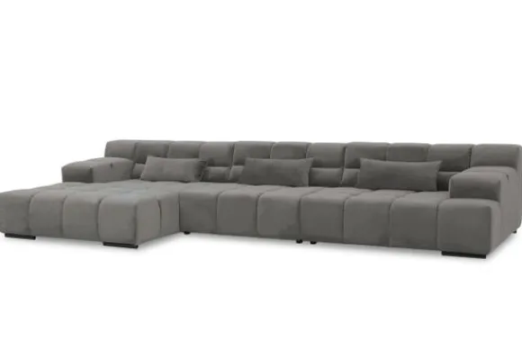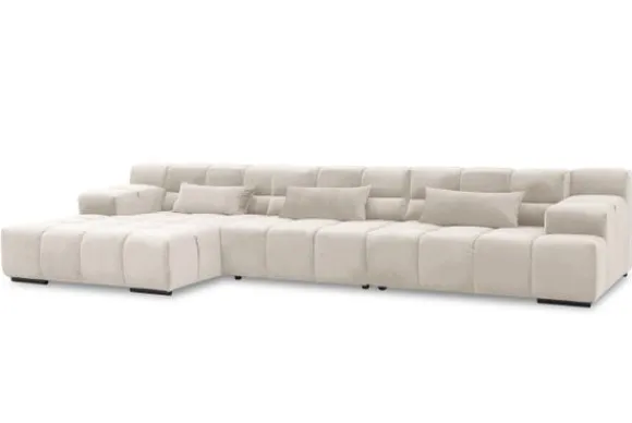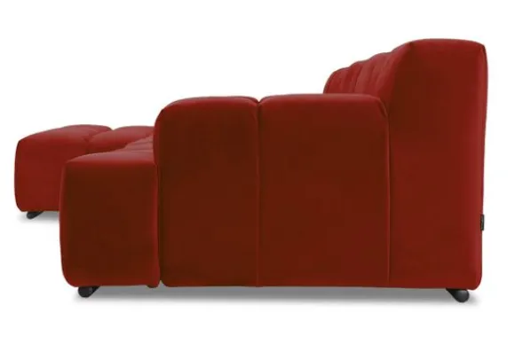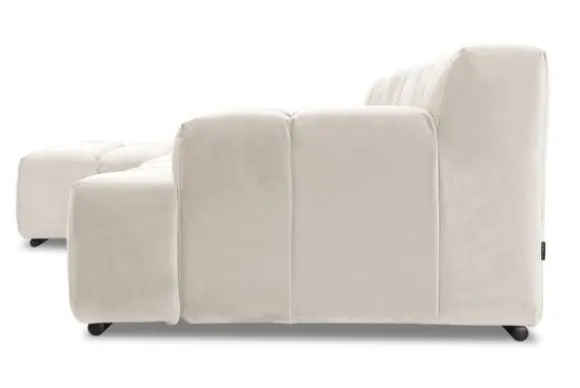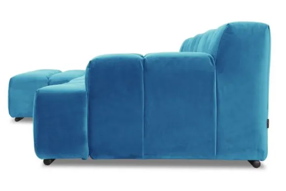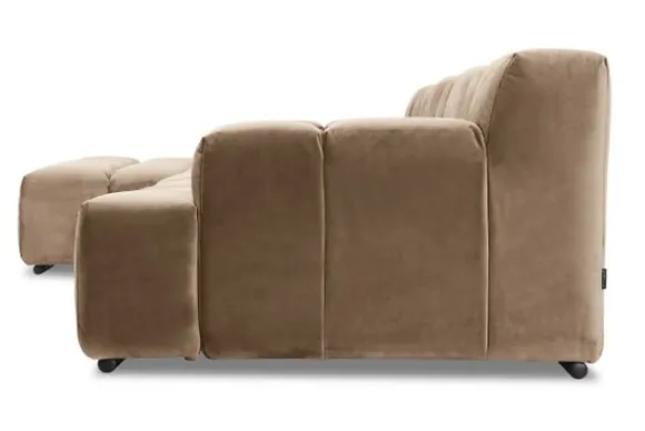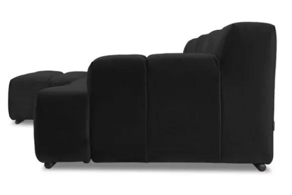 Dit bankstel is samen te stellen in vele afmetingen en verschillende opstellingen, of kies uit een van de standaard opstellingen. Ook kan je kiezen uit mat zwarte of chroom pootjes en zijn er bijpassende hoofdsteunen, sier- en lendekussens en poefjes beschikbaar. Deze worden uitgevoerd in dezelfde stof als de bank.