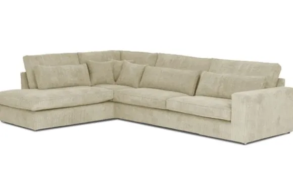 Hoekbank Romee van het merk Berg & Herk Meubelen heeft losse zit- en rugkussens en een robuuste zitting die doorloopt tot net boven de grond. De bank wordt standaard geleverd met de sier- en lendekussens die te zien zijn op de foto’s.