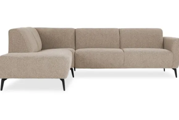 Hoekbank Beck van het merk Danish Design is beschikbaar in alle kleuren en in verschillende materiaalsoorten zoals stof, velvet en rundleder. Je kunt kiezen uit diverse afmetingen. Deze bank is zowel strak als luchtig. De Beck staat op hoge metalen pootjes en heeft vaste kussens. De rugkussens lopen schuin naar achteren voor optimaal zitcomfort.