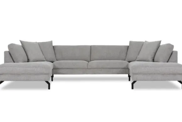 Hoekbank Seattle van het merk Smit Meubelen is verkrijgbaar in alle kleuren en verschillende materiaalsoorten als stof, velvet en rundleder. Daarnaast is deze bank verkrijgbaar in verschillende afmetingen en opstellingen. De bank heeft een strakke uitstraling dankzij de hoge, metalen pootjes en de vaste zitkussens. Extra sierkussens in de hoek die zorgen voor extra comfort zijn optioneel.