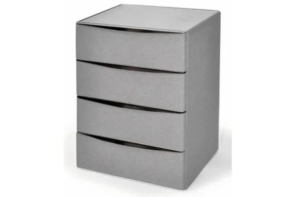 Nachtkastje Jocelyn van het merk Bed & Beyond is verkrijgbaar in alle kleuren en verschillende materiaalsoorten als stof en velvet. Bovenop het nachtkastje ligt een aluminium-kleurige glasplaat die de stof beschermt tegen vuil en bijvoorbeeld gemorst water. Het nachtkastje heeft vier lades met metalen handgrepen waardoor je ruimte genoeg hebt om verschillende spullen handig naast je bed te bewaren binnen handbereik. De handgrepen zijn in zwart metaal uitgevoerd.