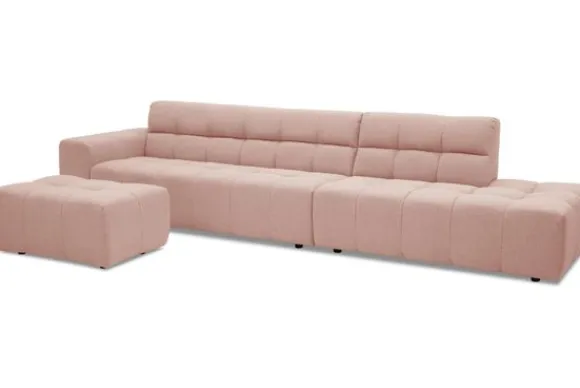 Bankstel Cantonada van het merk Kenzo is een royale zitbank met zachte rondingen en unieke siernaden die je interieur een romantische twist geeft.