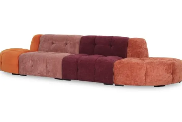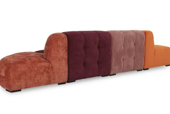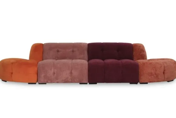 Je kunt kiezen uit verschillende materialen, waaronder rundleder en stoffen als velvet en boucle. Daarnaast is de bank verkrijgbaar in een breed scala aan kleuren. Je kan bij deze bank kiezen om alle elementen in dezelfde kleur te laten stofferen, of juist in verschillende kleuren.