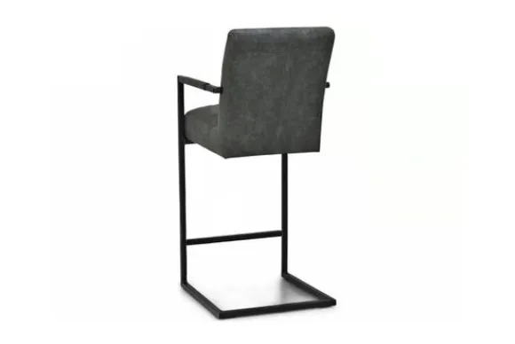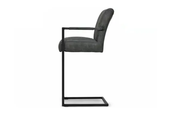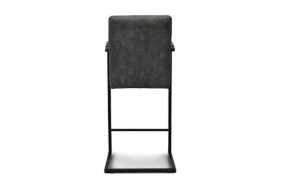 Deze barkruk wordt standaard uitgevoerd met metalen poten in de kleur zwart die zijn voorzien van een voetensteun. Daarnaast heeft de kruk verticale stiksels in de rugleuning en zitting en is deze voorzien van armleuningen.