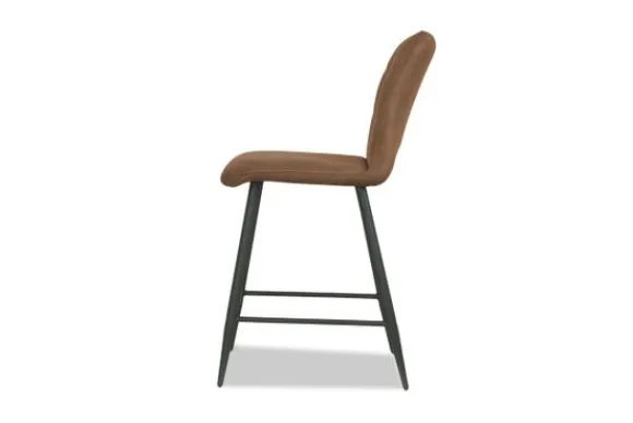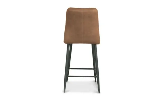 Barkruk Tom Cognac van het merk Olijk heeft een industriële uitstraling. De barkruk is gestoffeerd met Zorro Cognac. De barkruk is voorzien van een geblokt stiksel op de rug en heeft een metalen poot met daartussenin horizontale buizen die je kunt gebruiken om jouw voeten op neer te zetten.