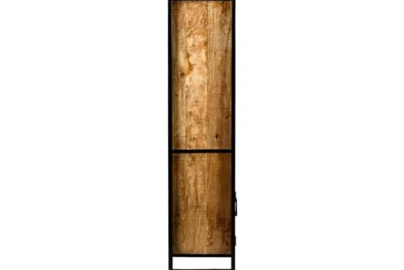 De bergkast is gemaakt van mangohout in combinatie met gecoat staal. Mangohout is een sterke en duurzame houtsoort met een zichtbare houtstructuur. Het stalen frame zorgt voor stabiliteit en een stevige basis.
