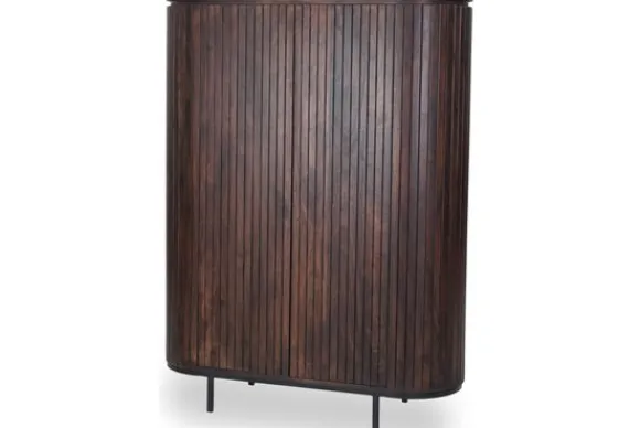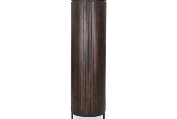 Bergkast Noor van het merk Livingfurn is een moderne bergkast met een rustige uitstraling. De kast is gemaakt van mangohout en opgebouwd uit verticale houten plankjes. Dit zorgt voor een strak lijnenspel en een natuurlijke uitstraling. Mangohout laat duidelijke kleurverschillen en structuren zien waardoor elke kast een eigen uiterlijk heeft. Het onderstel is gemaakt van gecoat staal en zorgt voor een stabiele en stevige basis.