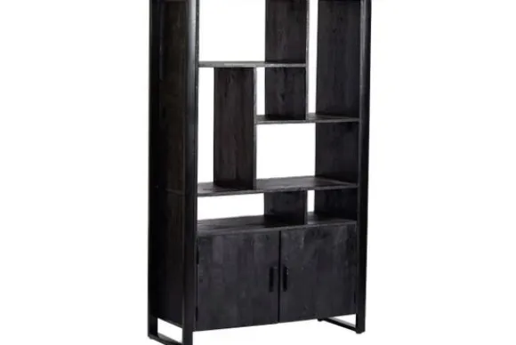 Bergkast Norris van het merk Livingfurn is een ruime opbergkast die geschikt is voor gebruik in de woonkamer of eetkamer. Door de combinatie van mangohout en zwart gecoat staal past deze kast goed binnen een modern of industrieel interieur.
