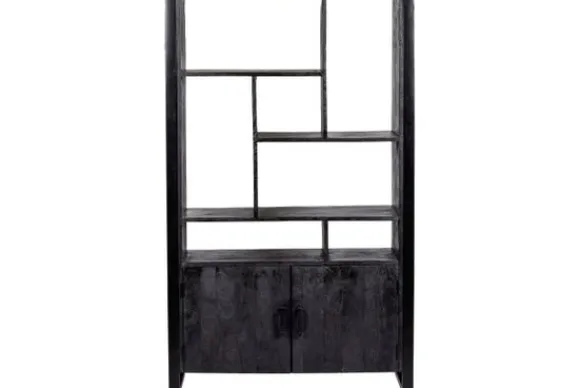 De kast beschikt over zeven open vakken in verschillende afmetingen voor boeken en decoratie. Onderin bevinden zich twee deuren voor het opbergen van spullen uit het zicht.