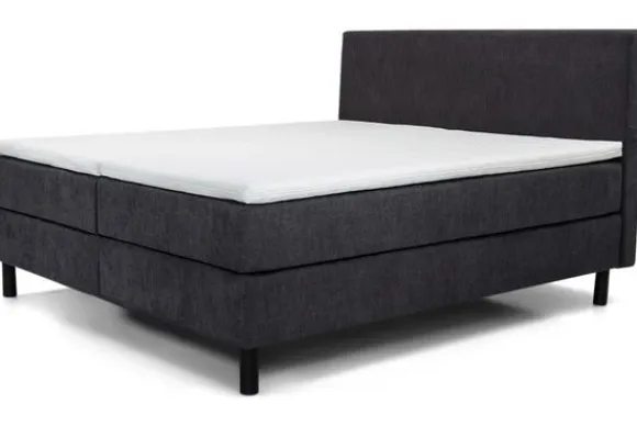 Deze boxspring wordt standaard geleverd met een Bonell box, een pocketveren matras, een topper van luxerendementschuim en zwart metalen hoekpoten met een hoogte van 10,5 cm. De box met bonellvering zorgt voor een stevige en comfortabele basis met een schuimlaag erbovenop. Standaard heeft het matras 648 pocketveren en een medium hardheid kern, met de optie om te kiezen voor een harde kern.
