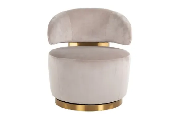 Draaifauteuil Maxime 210846 Khaki Velvet van het merk Richmond Interiors is gestoffeerd met Quartz Khaki 903. De fauteuil heeft brass (staal in mat goud) accenten en is draaibaar.