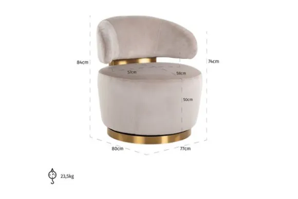 New Draaifauteuil 210846 Khaki Velvet Maxime Ronde Fauteuils|Draaifauteuils