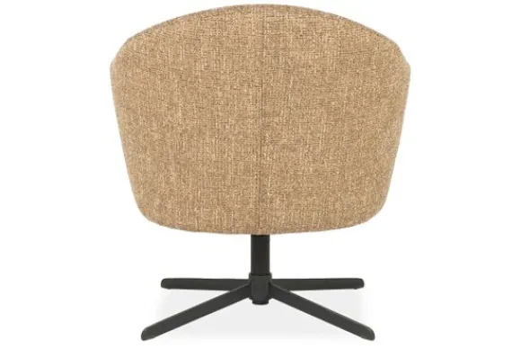 De stevige, zwarte metalen kruisvoet contrasteert subtiel met de lichte bekleding en zorgt voor een modern, industrieel accent. Dankzij de 360 graden draaifunctie biedt deze fauteuil maximale bewegingsvrijheid en flexibiliteit – ideaal in een leeshoek, naast de bank of in een stijlvol kantoor.