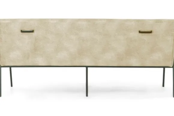 Deze eetkamerbank wordt standaard uitgevoerd met metalen poot en met twee handgrepen. Deze handgrepen kun je ook weglaten.