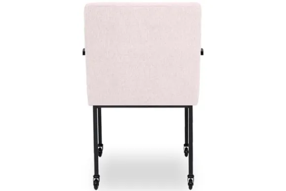 Eetkamerstoel Amuse van het merk Divani is verkrijgbaar in alle kleuren en in materiaalsoorten zoals stof, velvet en rundleder. Je kunt kiezen uit diverse afmetingen en pootmogelijkheden. De stoel wordt standaard uitgevoerd met 4 zwarte metalen poten met wieltjes en een metalen armleuning. Deze stoel is afgewerkt met dichte naden en een gladde rugleuning.