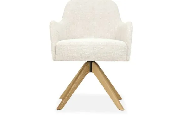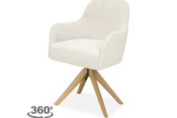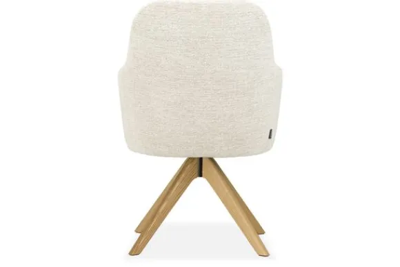 De eikenhouten spinpoot geeft de stoel een moderne uitstraling en is niet alleen mooi om te zien, maar ook functioneel. Dankzij het 360 graden draaimechanisme met autoreturnsysteem draait de stoel soepel mee en keert hij automatisch terug naar zijn oorspronkelijke stand, handig én netjes aan tafel.