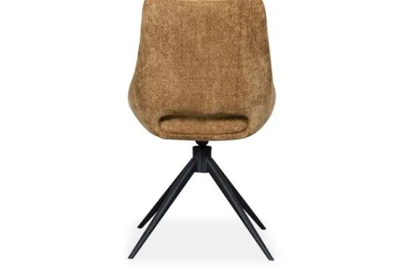 De gebogen rugleuning biedt goede ondersteuning tijdens lange diners. De brede zitting zit comfortabel en de draaifunctie met auto return maakt de stoel praktisch in dagelijks gebruik. De slanke metalen poten zorgen voor stabiliteit en geven de stoel een moderne, luchtige uitstraling.