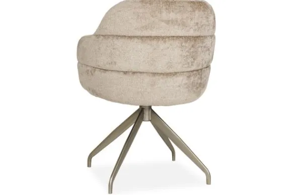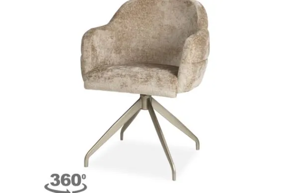 Eetkamerstoel Sigi van het merk Devira is verkrijgbaar in alle kleuren en verschillende materiaalsoorten zoals stof, velvet en rundleder. De horizontale stiksels op de achterkant van de stoel geven de stoel een chique uitstraling en hierdoor maakt de eetkamerstoel jouw zithoek compleet binnen meerdere stijlen. Je kunt ook heerlijk stevig zitten in de stoel dankzij de ronde armleuningen. De stoel heeft een gladde binnenkant, vertikale stiksels aan de buitenkant van de rugleuning en ronde armleuningen. Deze eetkamerstoel (zoals afgebeeld) wordt standaard geleverd met de 503 champagne metalen 360 graden draaispinpoot met terugdraaisysteem. Bij het terugdraaisysteem kun je de zitting van de stoel draaien en daarna zal deze uit zichzelf weer terugdraaien naar het midden.