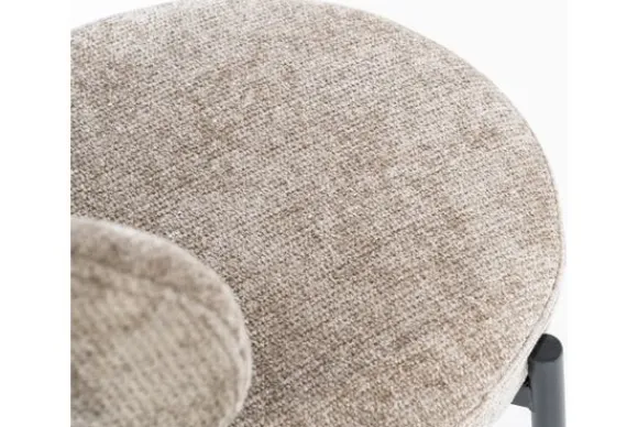 De eetkamerstoel is beschikbaar in de stof Aurora, in de kleuren beige, bruin en taupe.