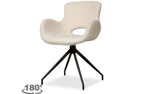 Eetkamerstoel Campo AI 0125 wit van het merk Tower Living is beschikbaar in drie kleuren teddy stof: donkerbruin, lichtbruin en wit. De Campo is tevens beschikbaar als barkruk. De eetkamerstoel heeft armleuningen met een opening onderin de rugleuning en is voorzien van een metalen spinpoot. Deze stoel is 180 graden draaibaar en is voorzien van een terugdraaisysteem. Door het terugdraai systeem kun je de zitting van de stoel draaien en daarna zal deze uit zichzelf weer terug draaien naar het midden.