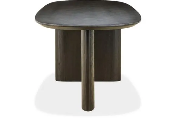 Eetkamertafel Durban dark coffee van het merk Richmond Interiors is gemaakt van eiken fineer. Eikenhout leeft en geeft hierdoor karakter aan jouw meubelstuk. Daarnaast is elk stuk uniek door de nerven en noesten. Fineer is een dun laagje hout dat op plaatmateriaal wordt aangebracht. Dit wordt geproduceerd door een stam in dunne laagjes te snijden, hierdoor wordt de stam optimaal benut en is er weinig zaagverlies. Deze eetkamertafel is voorzien van een Deens ovaal blad met tapse randafwerking. Je raakt nooit uitgekeken op deze eettafel, dit komt doordat je de poten naar eigen smaak kan plaatsen onder het blad. Je kan de poten schuin, recht of in het midden van het blad plaatsen.