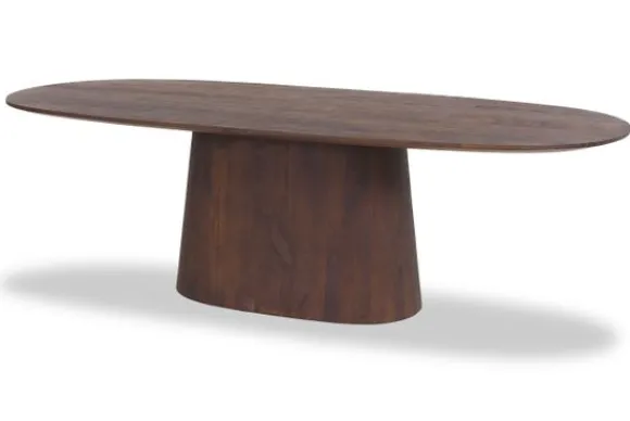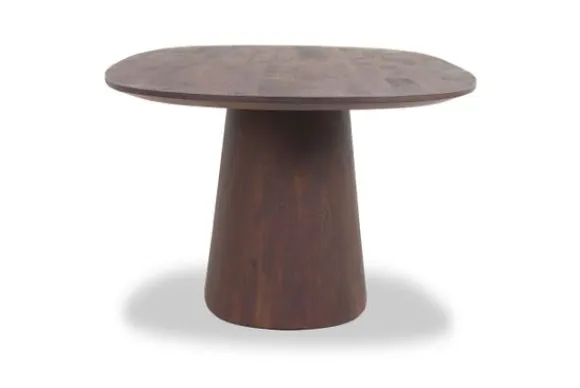 Eettafel Aron van het merk Eleonora is een robuuste eettafel gemaakt van mangohout met een geverfde afwerking. Het tafelblad loopt elegant taps af naar beneden, wat zorgt voor een verfijnde uitstraling. De stevige centrale poot geeft het geheel een krachtig en evenwichtig karakter.