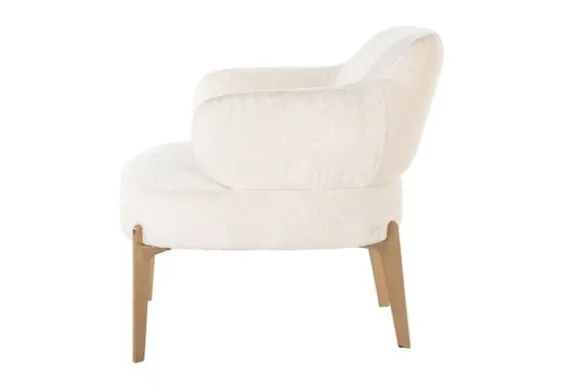 Fauteuil Venus 211058 White Chenille van het merk Richmond Interiors is gestoffeerd met Bergen 900 White Chenille. Chenille is makkelijk te reinigen. Verder heeft deze stof een mooie glans en door de vezels ziet de stof er bij elke lichtinval anders uit. Tevens is de stof zeer comfortabel en zacht, wat zorgt voor een chique en warme uitstraling. De fauteuil heeft een ronde rugleuning die doorloopt in armleuningen, dit zorgt voor een comfortabele zit. De fauteuil heeft brass (staal in mat goud) poten.