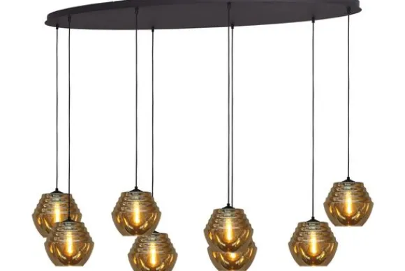 De lamp heeft 8x een E27 fitting en wordt zonder lichtbron geleverd. Hierdoor kun je zelf precies bepalen wat voor licht je van deze lamp wilt. Van een kooldraad lamp tot een LED bron!