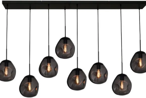 Hanglamp Lava 2761-05-160-25-80561 van het merk Masterlight is een unieke lamp met een chique uitstraling. Het prachtige glas is mond geblazen in Italië. De basis is van metaal en uitgevoerd in de kleur zwart. Acht glazen lampenkappen hebben een diameter van 24 centimeter en zijn 23 centimeter hoog. Door de vorm en kwaliteit van het glas is deze hanglamp een echte eyecatcher! Het gedeukte glas geeft de lamp een speelse look die goed te combineren is in verschillende interieurs. Hang de lamp boven je eettafel of in de gang. De lamp heeft een E27 fitting en wordt zonder lichtbron geleverd.